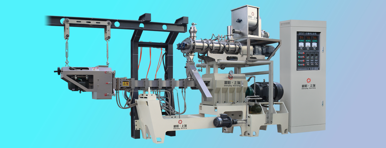 雙螺桿膨化機由供料系統、擠壓系統、旋切系統、加熱系統、冷卻系統、傳動(dòng)系統、控制系統組成。該機適用原料廣泛、生產(chǎn)產(chǎn)品多樣,變頻調速、自動(dòng)化程度高、運行平穩、使用壽命長(cháng)。
