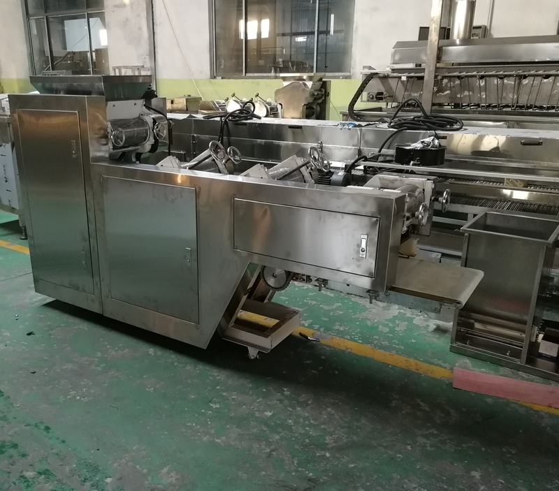 和面機→壓面機→蒸煮切斷機→油炸機→冷卻機