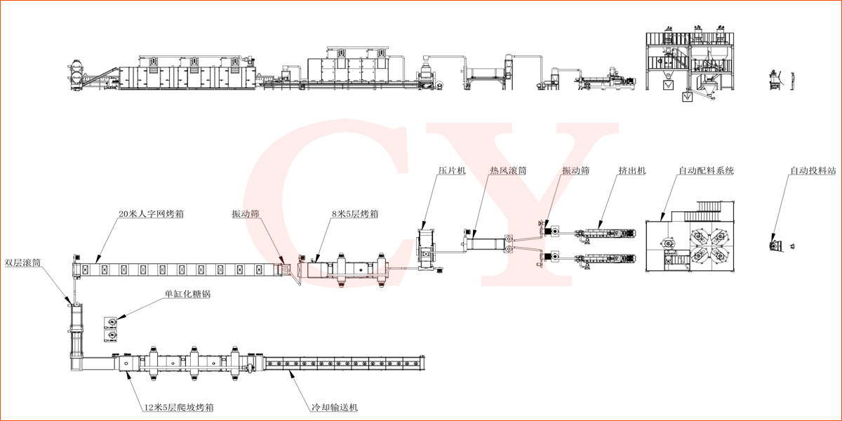 早餐玉米片生產(chǎn)線(xiàn)生產(chǎn)線(xiàn)構成: