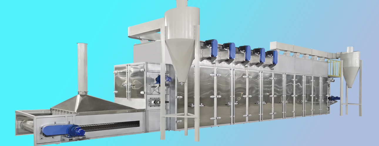 5、每2米為一個(gè)獨立干燥段,干燥段風(fēng)壓和風(fēng)速獨立循環(huán)控制,適用不同產(chǎn)量和不同產(chǎn)品的烘干。