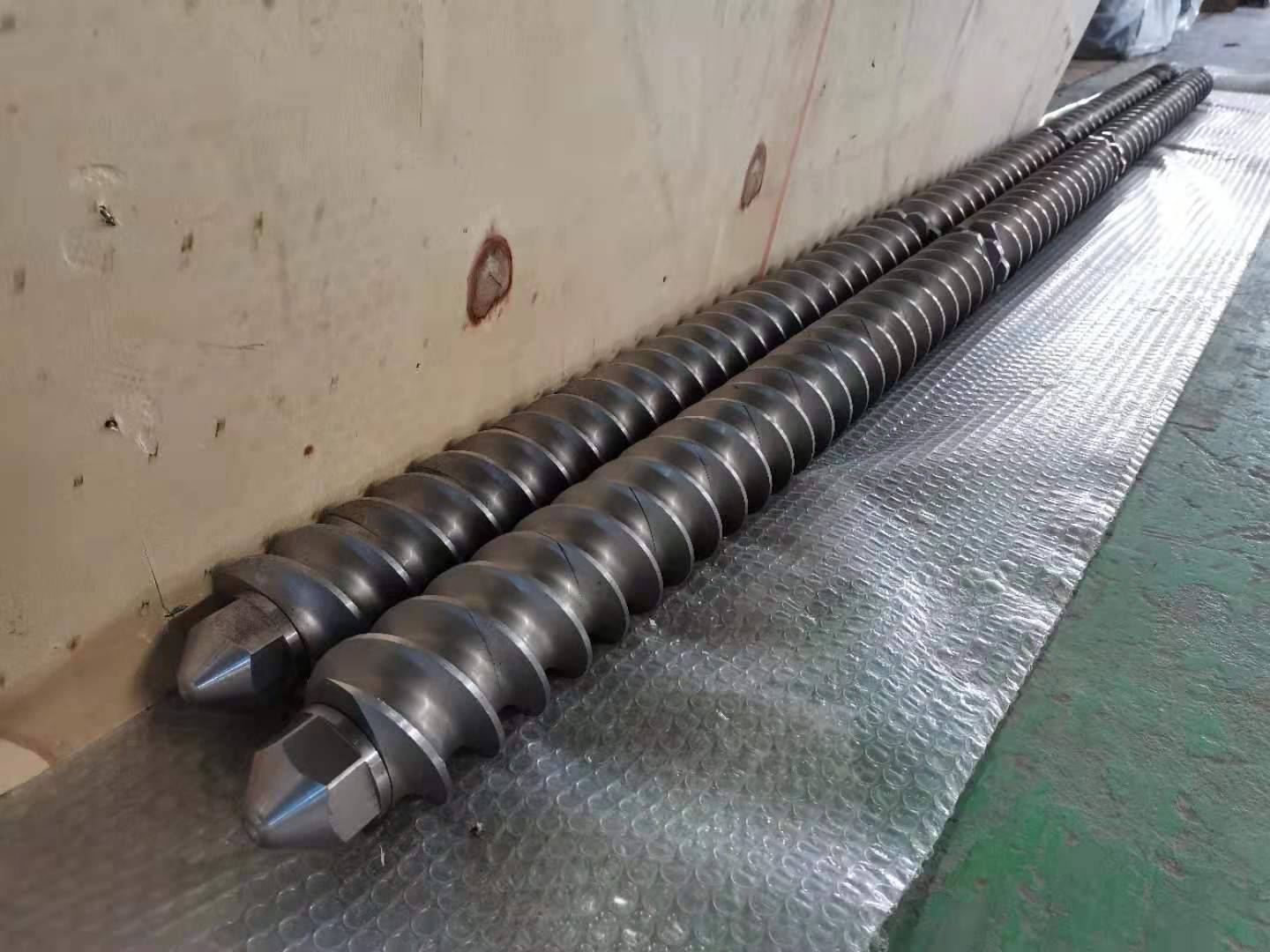 螺桿:螺桿為合金鋼材質(zhì),積木組合式螺桿,螺桿直徑:57mm,長(cháng)徑比為:1:25.5,螺桿螺紋有效長(cháng)度:1453.5mm